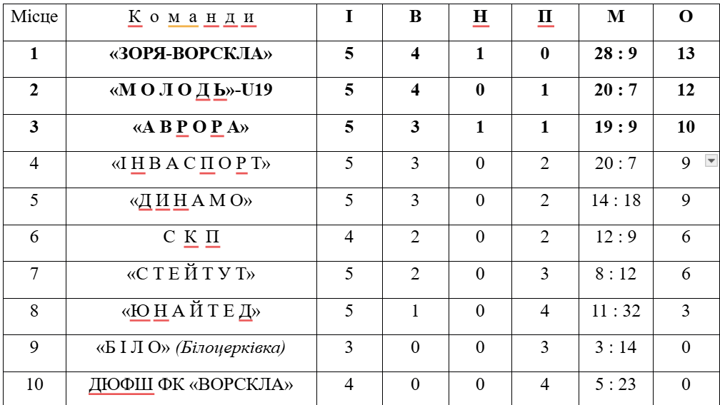 - «Зоря-Ворскла» (Полтава) – «Юнайтед» (Полтава) – 12:3