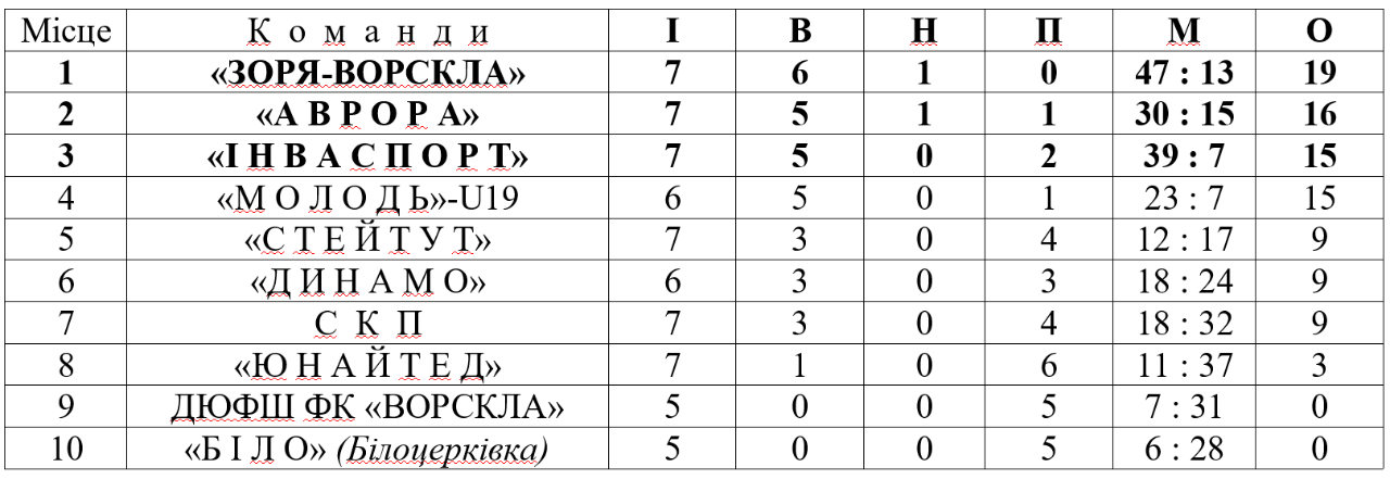Наразі таблиця чемпіонату виглядає так: