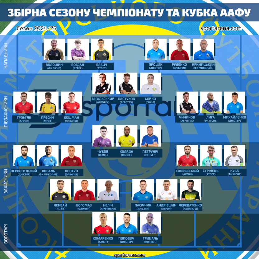 Асоціація аматорського футболу України оприлюднила список 33-х кращих футболістів за підсумками сезону 2024/2025. До нього увійшли четверо футболістів «Олімпії» з Савинців. Йдеться про центрального захисника Едуарда Богомаза, лівого захисника Владислава Ковтуна, лівого півзахисника Ігоря Кошмана та нападника Андрія Руденка. Ось що пишуть про них у представленні ААФУ.