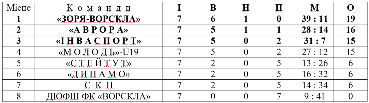 - «Зоря-Ворскла» (Полтава) – «Стейтут» (Полтава) – 7:2