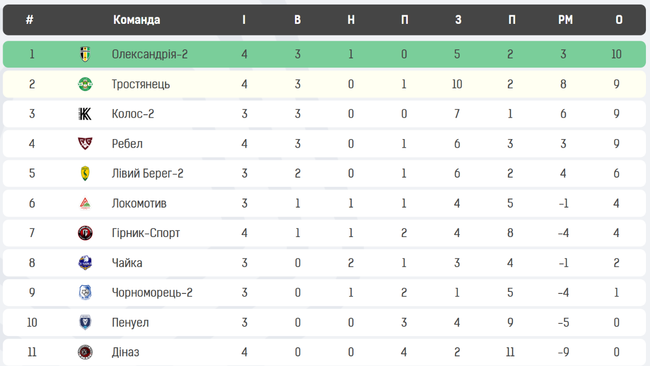 Турнірна таблиця третього дивізіону після чотирьох турів
