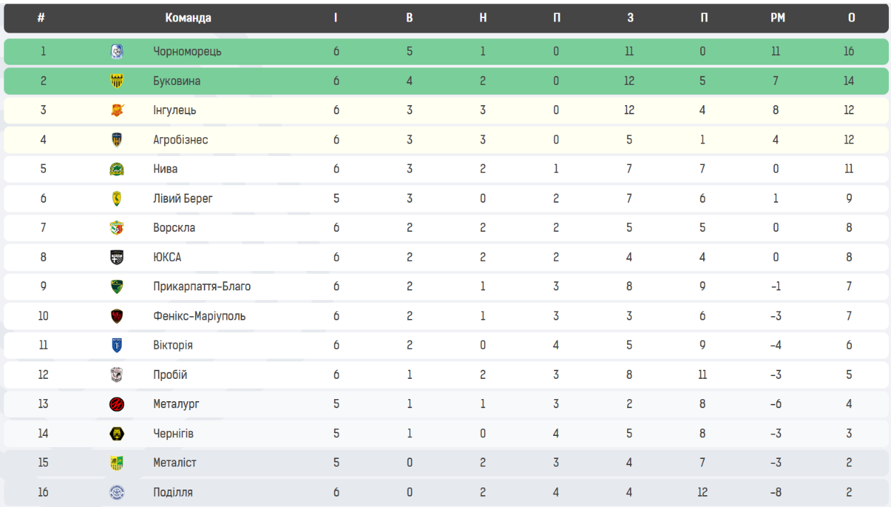 13-14 вересня відбулися матчі шостого туру Першої ліги ЧУ з футболу. Полтавська «Ворскла» в цьому турі зіграла внічию з волочиським «Агробізнесом». Загалом, цей тур закінчився з такими результатами: