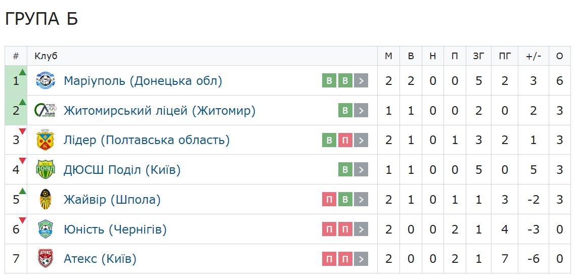 Наразі таблиця Групи Б, де виступають представниці Полтавщини, виглядає так: