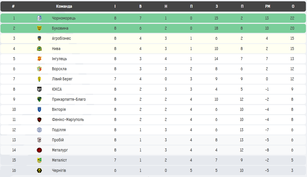 Наразі турнірна таблиця Першої ліги виглядає так: