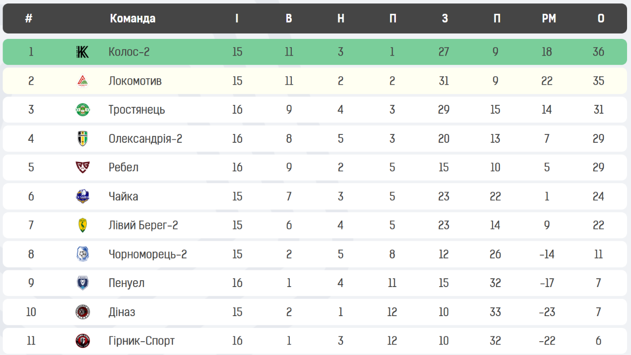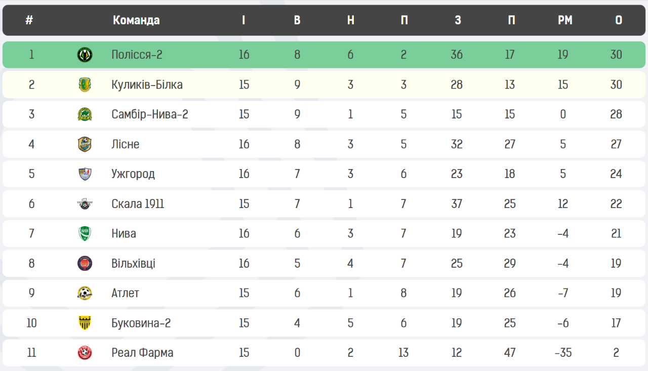 Актуальна турнірна таблиця третього дивізіону українського футболу