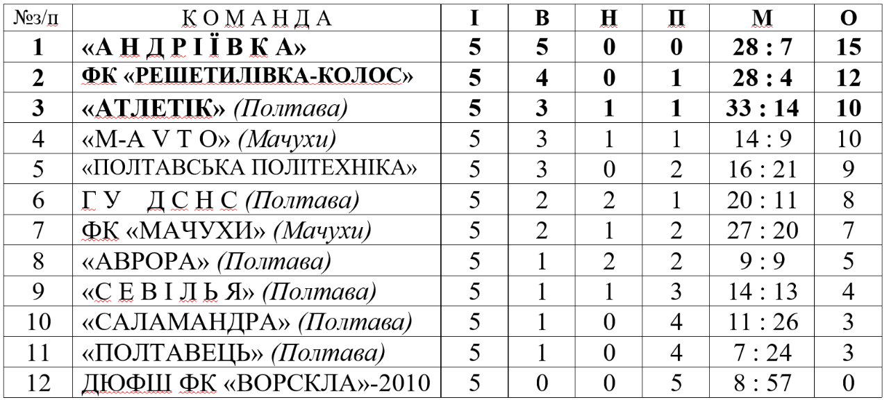 - «Атлетік» — «Полтавська Політехніка» — 5:6