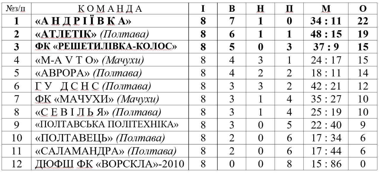 - «Андріївка» — ФК «Решетилівка-Колос» — 2:1