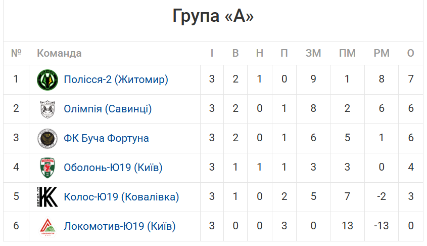 Наразі турнірна таблиця Групи А, де виступає «Олімпія», виглядає так: