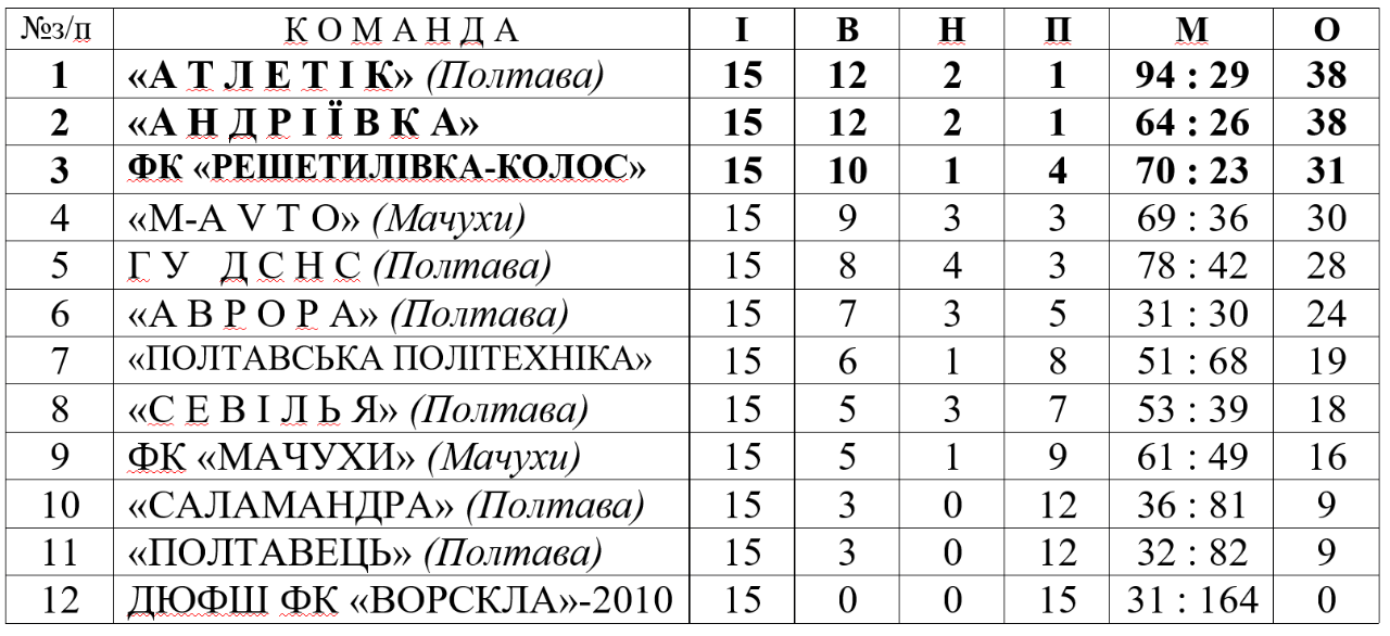 - ДЮФШ ФК «Ворскла»-2010 — ФК «Решетилівка-Колос» — 2:8