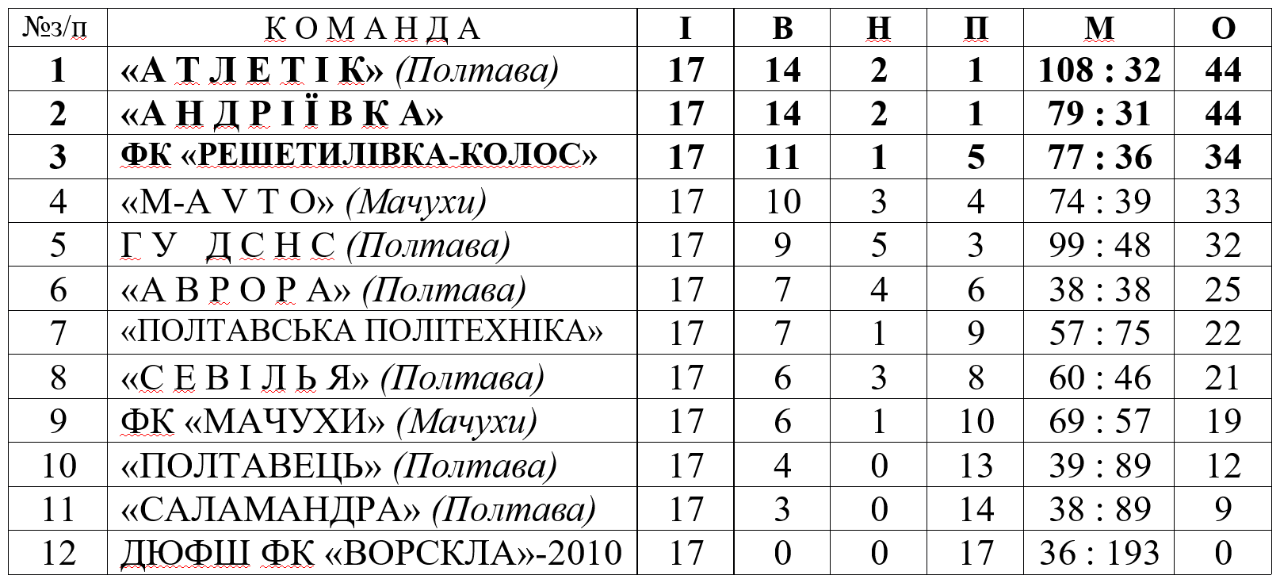 - ФК «Решетилівка-Колос» — «Атлетік» — 2:11
