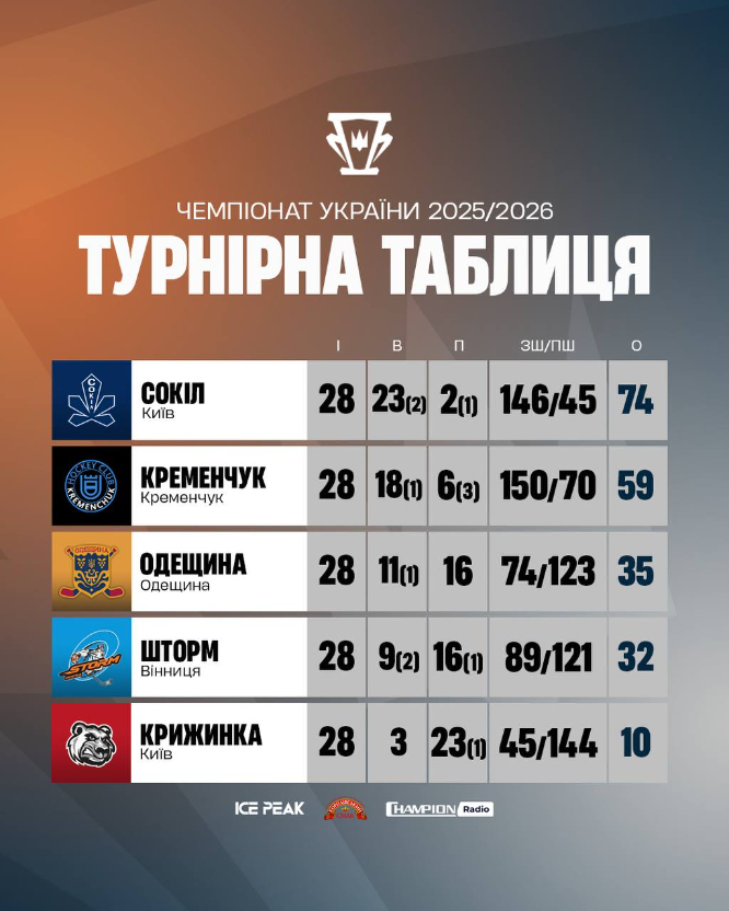 Таким чином ХК «Кременчук» закінчує перший етап сезону на другому місці, а у плей-оф зіграє проти «Одещини».