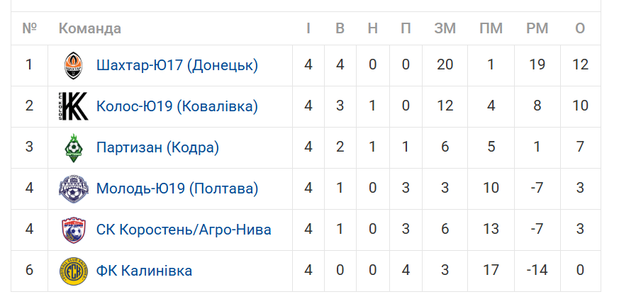 Наразі таблиця змагань виглядає так: