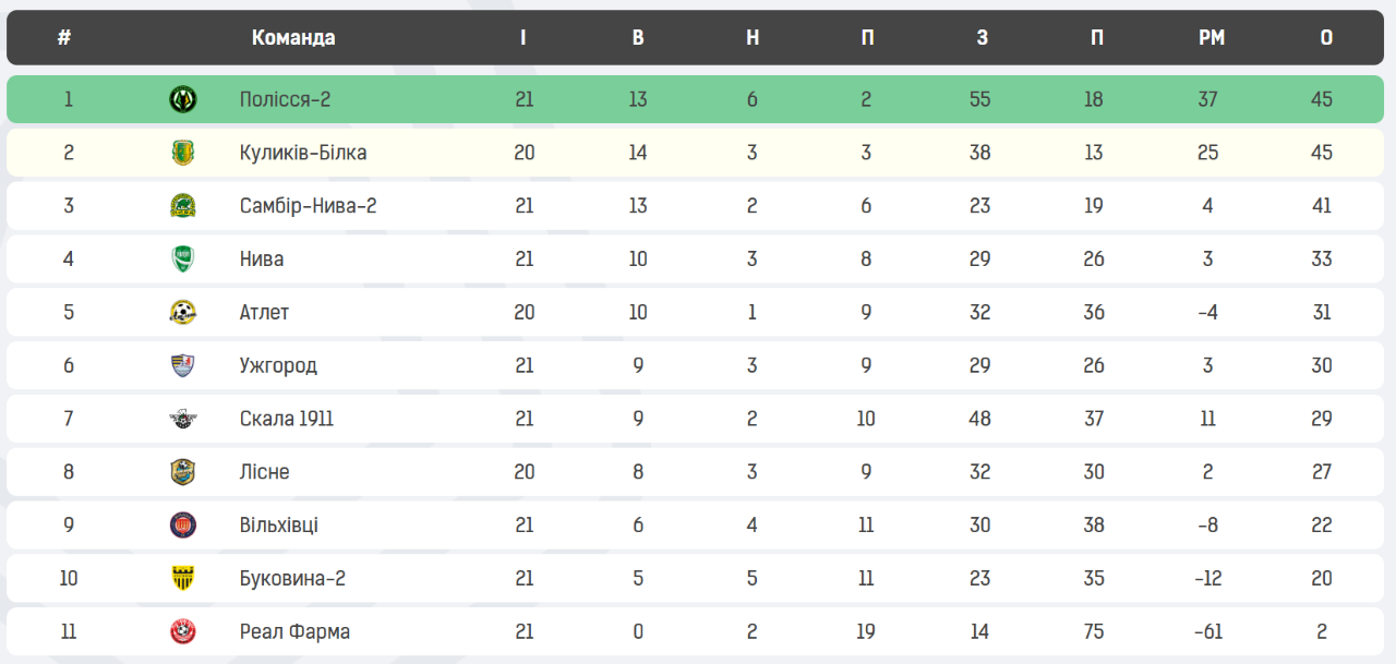 - «Полісся-2» — «Реал фарма» — 5:0