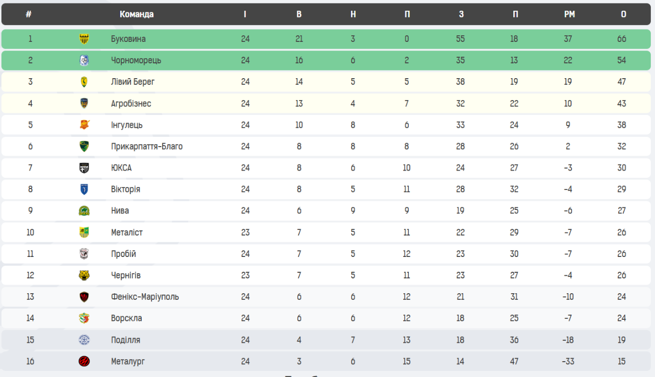 Після 24-х турів таблиця Першої ліги виглядає так: