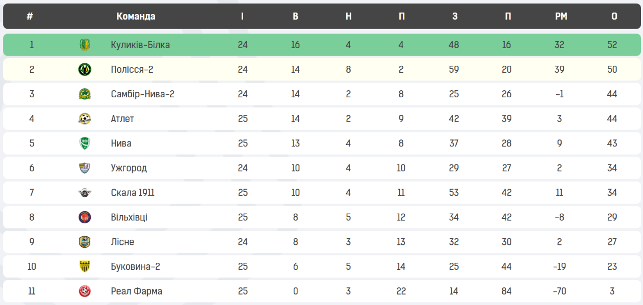 Турнірна таблиця третього дивізіону після 27 турів