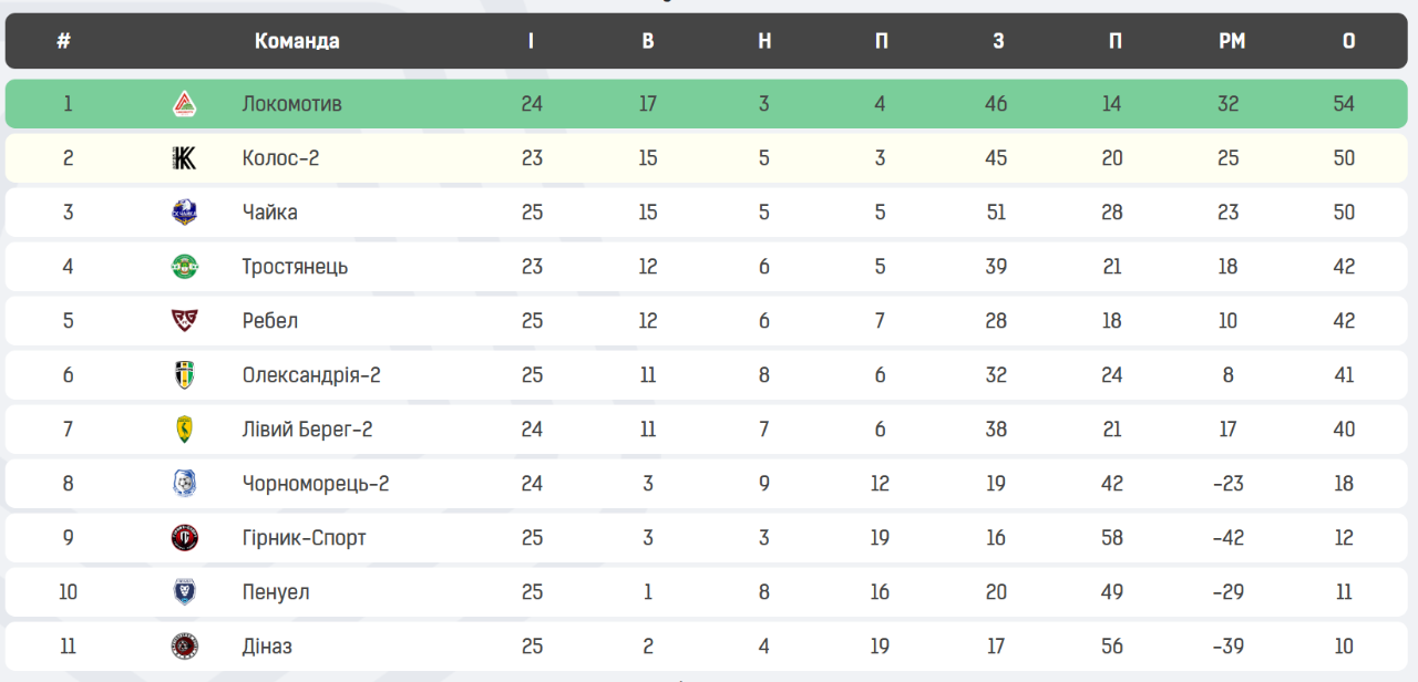 - «Чорноморець-2» — «Гірник-Спорт» — 1:0