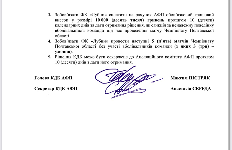ФК «Пирятин» та ФК «Лубни» оштрафували: перерваний матч дограють